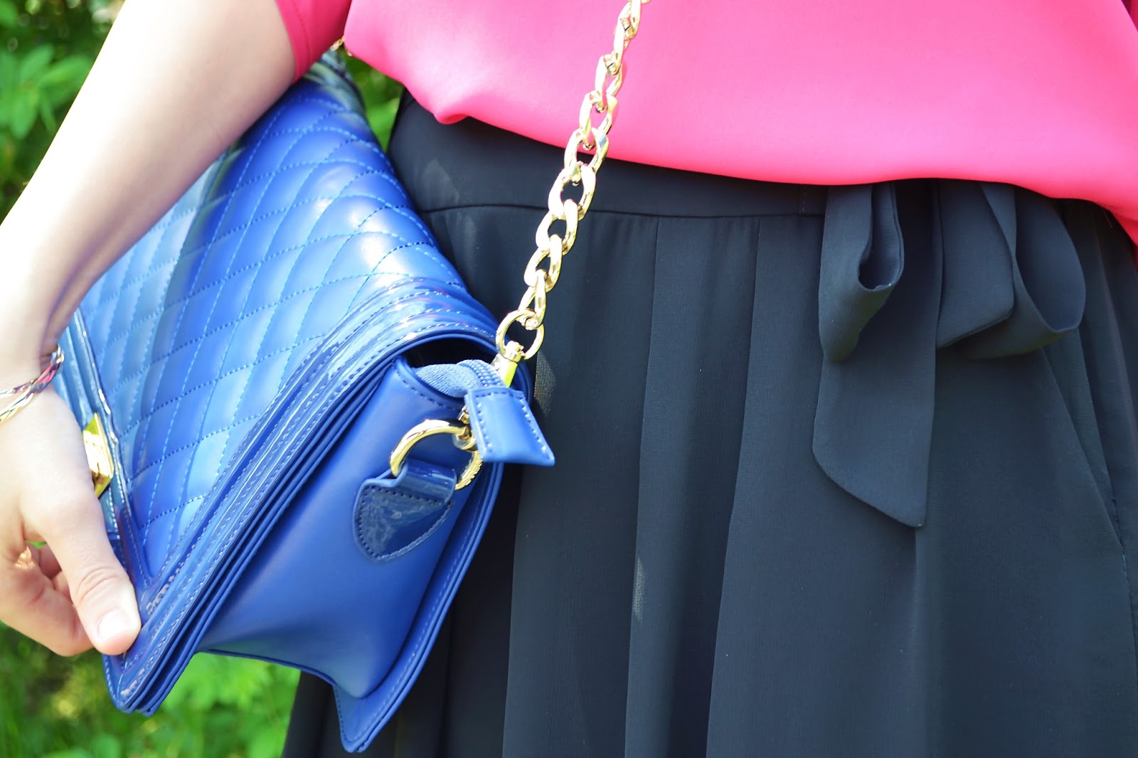 V tomto dnešnom outfite vám predstavujem takú tú príjemnú vzdušnú kombináciu počas teplejších dní, ktorá zaručene nesklame. Obľúbenej cyklámenovej som tentokrát dovolila zahrať prím a svoje debutové vystúpenie zažíva krásna modrá kabelka zo zaujímavého e – obchodíka www.jej.sk. No a samozrejme nesmeli chýbať lakované lodičky.