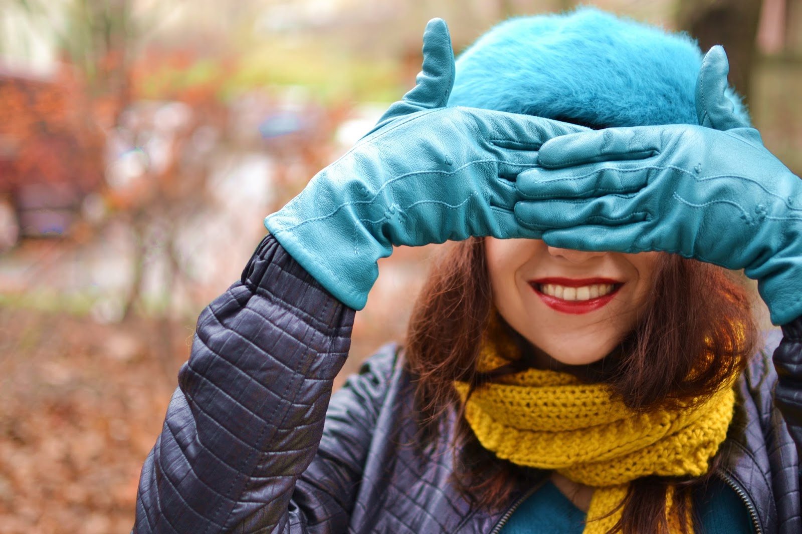 U mňa každoročne vzniká potreba mať jedny nové rukavice v konkrétnej farbe (presne tak, týka sa to aj pančušiek). Pred dvomi rokmi to boli tyrkysové kožené rukavice – doplnok, ktorý mi vždy dokáže krásne oživiť akýkoľvek smutne vyzerajúci outfit (tohto roku som Ježiškovi písala o žltých, tak som zvedavá). Nesmierne ma potešilo, keď sa mi zase minulý rok na to podarilo zohnať v mojom rodnom meste ešte aj tyrkysovú baretku. Hneď som si povedala, že s touto baretkou moje outfity zaručene nebudú nudné! Dnes ju máte možnosť vidieť aj tu na blogu vo veľkej premiére. Na sebe ju mám prvýkrát a poviem vám, s výsledkom som bola nadmieru spokojná! Dovolila som si outfit dokombinovať s výraznou žltou sukňou, ktorú ste tu videli nejeden raz a dlhým šálom v tej istej farbe. Aby celý outfit príliš nesvietil, triezvo som usúdila, že toto žiarivé farebné oblečenie tak trochu stlmím čiernou bundou, čiernymi pančuškami a čiernymi čižmami. A outfit dňa bol na svete.