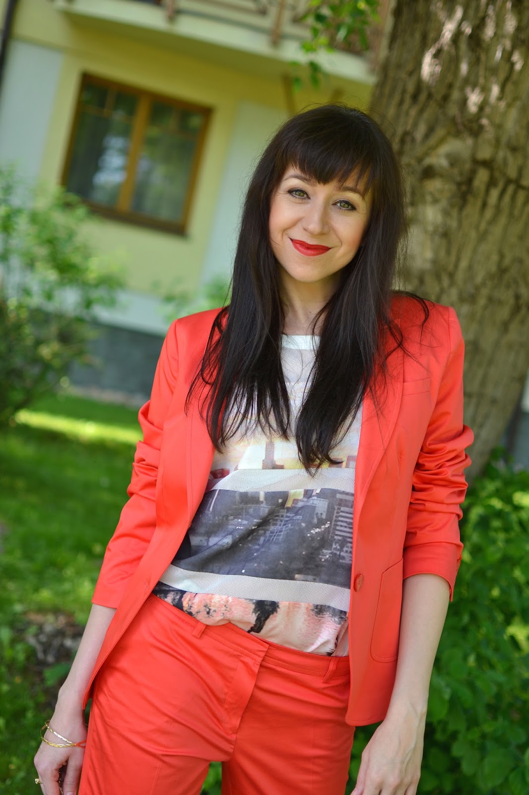 Nohavicový kostým by som privítala v každej jednej farbe! V tom dnešnom oranžovom sa cítim neprehľiadnuteľná a výrazná, čo mojej povahe dozaista vyhovuje. 🙂 Podľa mňa však kostýmy a najmä tie farebné určite nemusia patriť len do práce, ale môžete si v nich vyraziť len tak niekde von, napríklad na dobrú citronádu, ktorá vás v priebehu dňa určite výborne osvieži. A ani nočná obloha zaplavená hviezdami vám nemôže zabrániť obliecť si takýto farebný oblek, ak máte v pláne zabávať sa vo vašom obľúbenom bare.