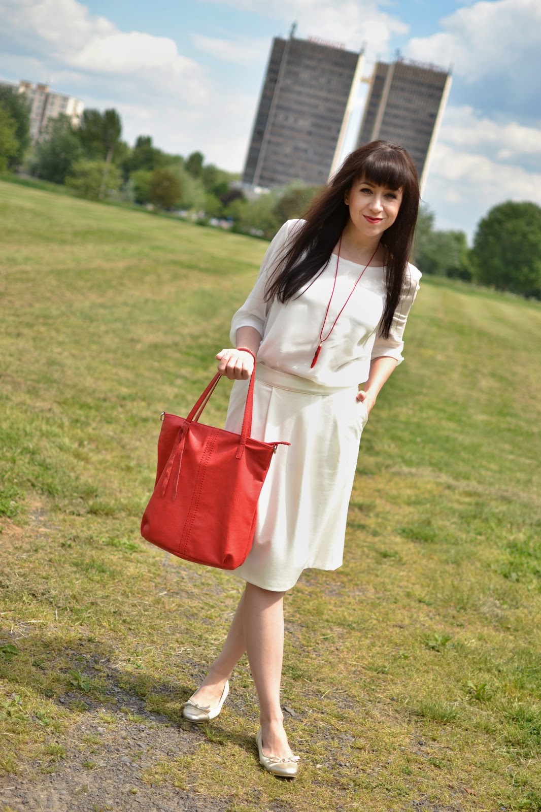 You are pure perfection in white and your red bag gives it a great nice pop. You look amazing.