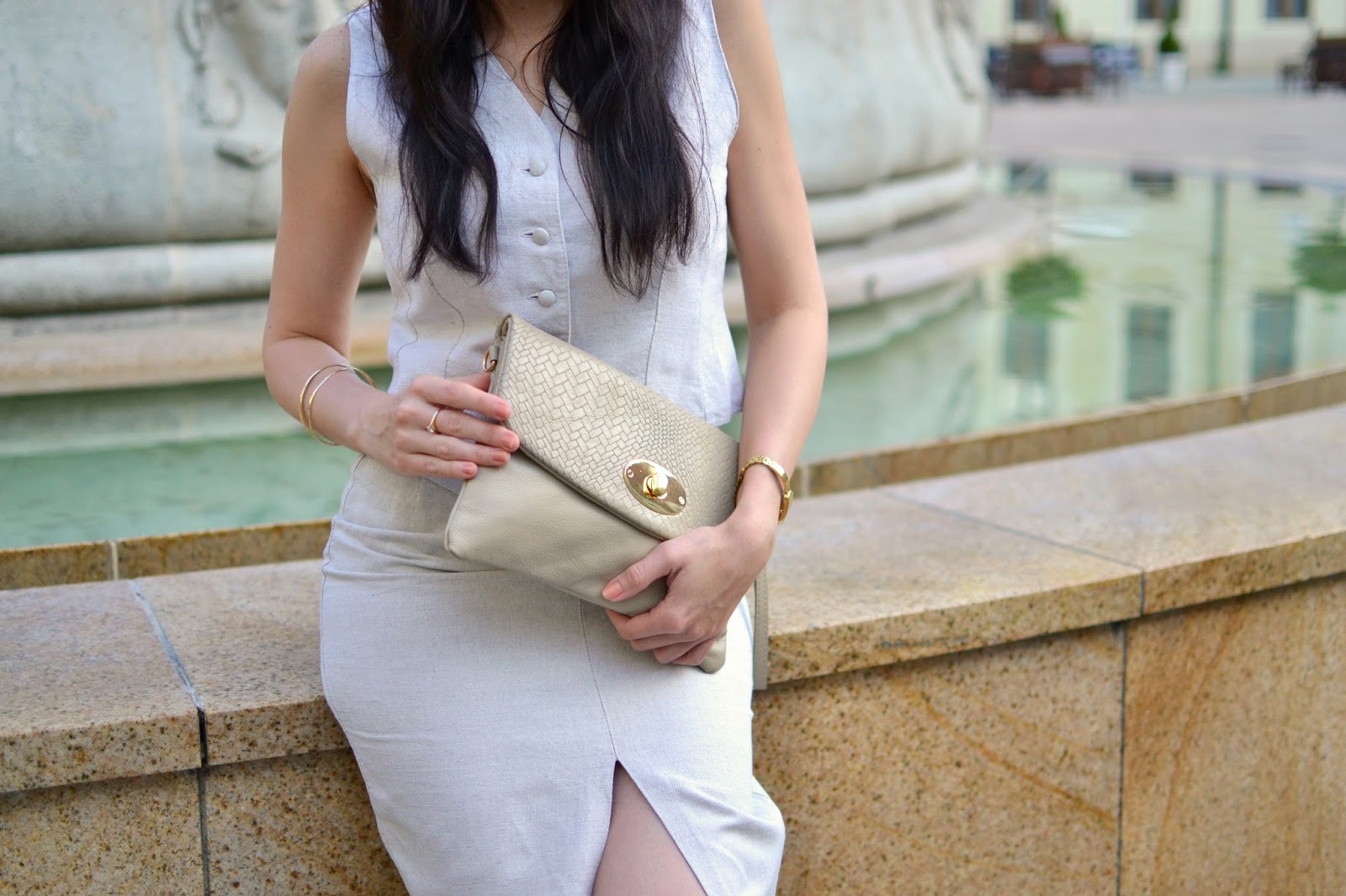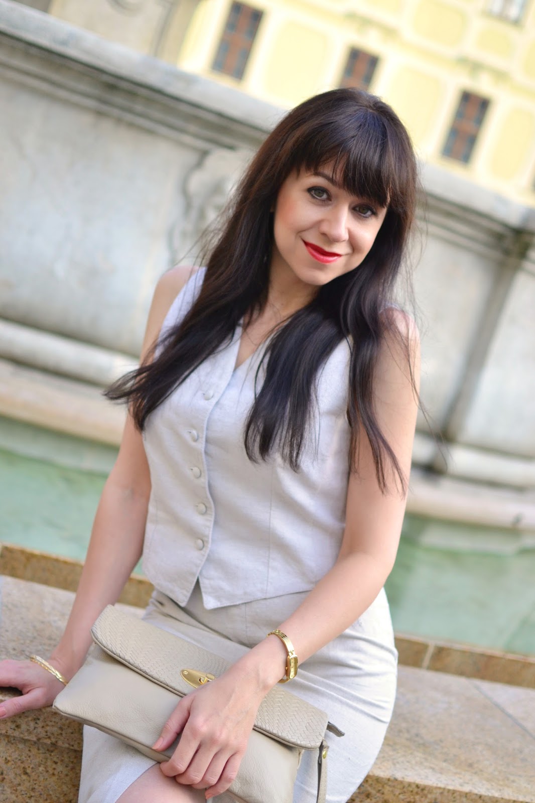 Už minulé leto som po tejto veľmi ženskej dvojkombinácii pokukovala, ale na svoje znovuzrodenie si museli počkať ešte jeden rok. Takže dnes, opäť v plnej paráde prezentujem to, čo ste ešte u mňa nevideli. Vesta je tak šikovne riešená, že si pod ňu nemusím dávať tričko alebo blúzku. K tomu je z prírodného materiálu, čo mi pri vysokých plusových teplotách uľahčuje samotné nosenie. V prípade sukne oceňujem žensky pôsobiaci vyvýšený pás, ďalej to, ako pekne obopína moje boky a zároveň aj to, že má vpredu a vzadu veľký rázporok, čím sa mi pri chôdzi rafinovane poodhaľujú nôžky. V takomto prevedení sa cítim naozaj „poviem to znova“ žensky!